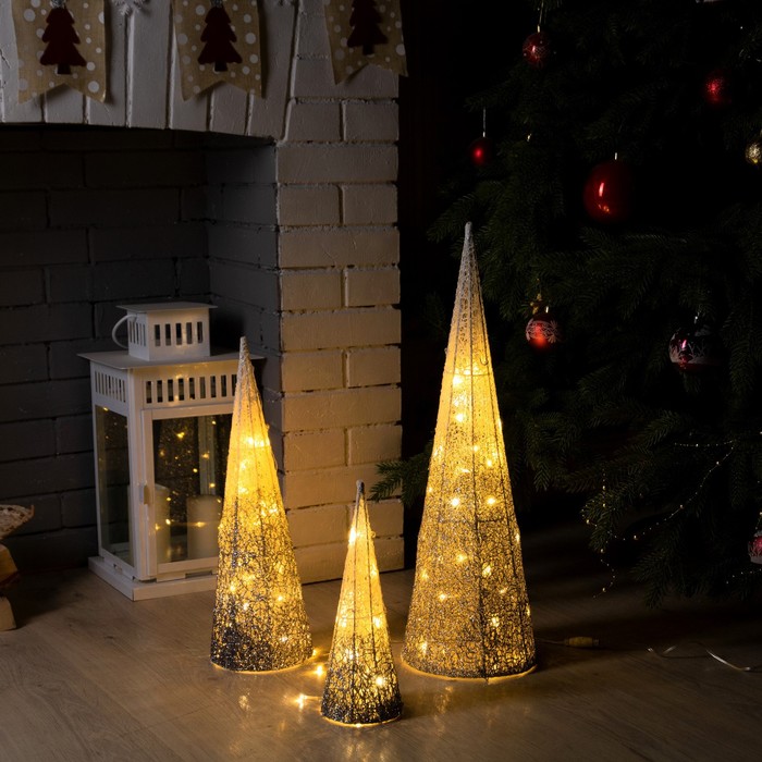 Светодиодная фигура «Серебристые конусы» 30, 45, 60 см, текстиль, металл, 220 В, свечение тёплое белое
