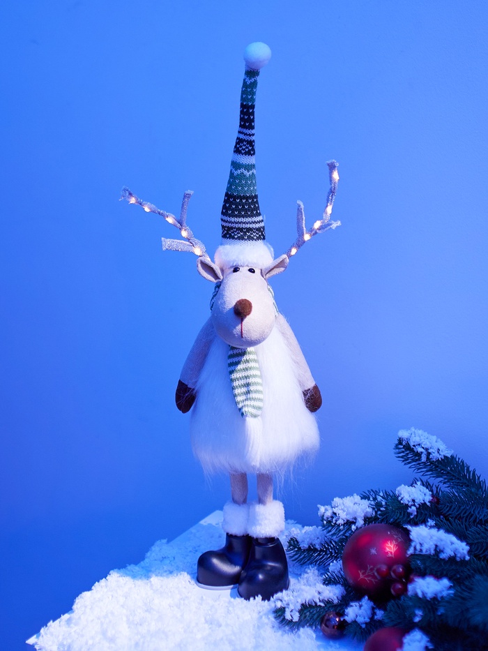 Светодиодная фигура «Новогодний лосик» 58 см, текстиль, 10 LED, от батареек CR2032×1, свечение тёплое белое