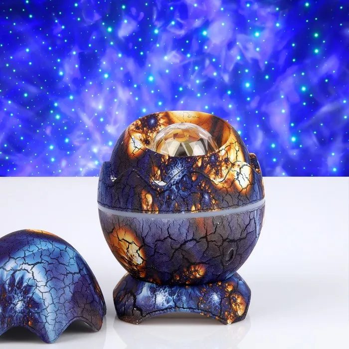 Световой прибор «Яйцо динозавра» 10 см, динамик, съёмная полусфера, свечение RGB, пульт ДУ, USB, синий