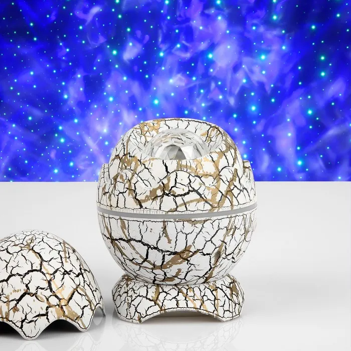 Световой прибор «Яйцо динозавра» 10 см, динамик, съёмная полусфера, свечение RGB, пульт ДУ, USB, белый