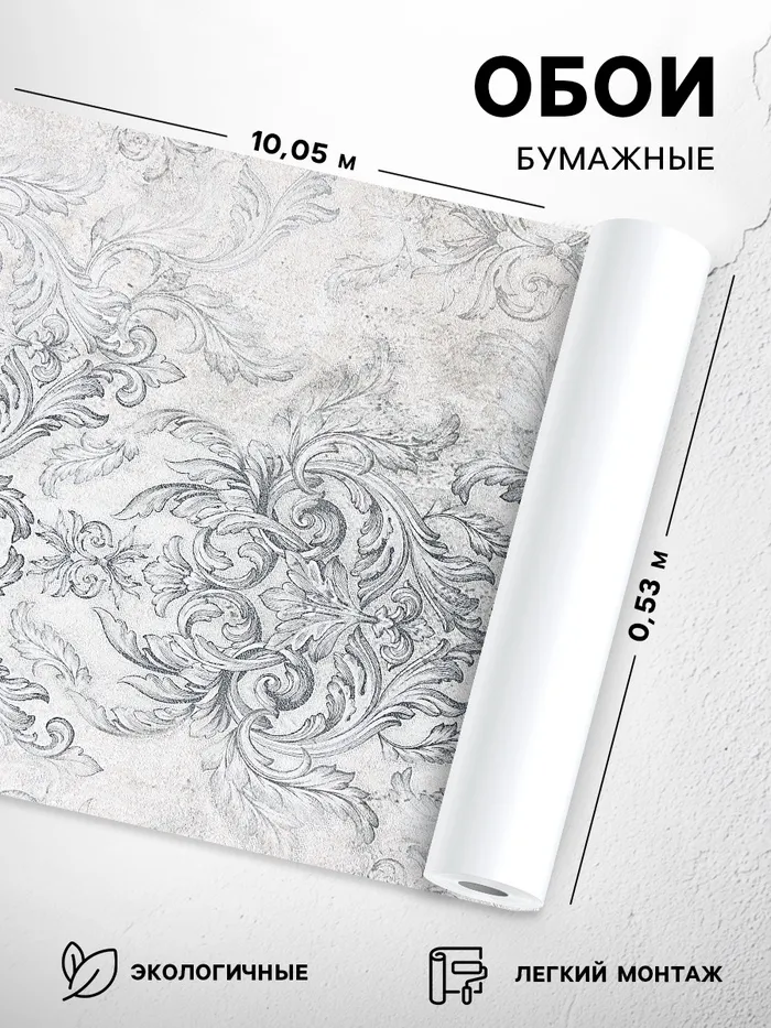 Обои бумажные «Русские обои. Калейдоскоп 1902", 0.53×10.05 м, цвет серый