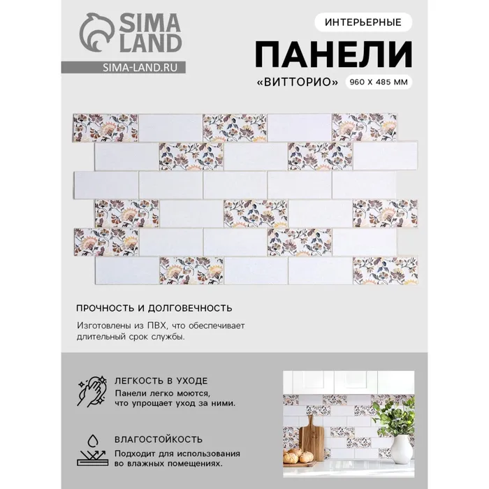 Стеновая панель ПВХ «Витторио», 960×485 мм, цвет бежевый