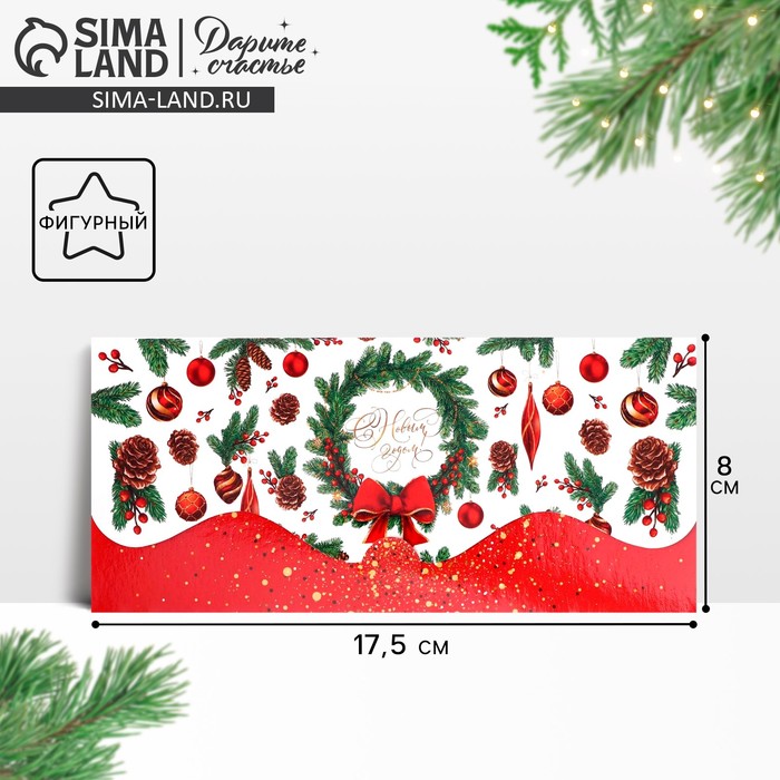 Конверт для денег фигурный «Новогодний венок», 17.5 х 8 см