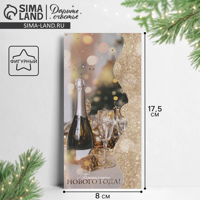 Конверт для денег фигурный «Блестящего Нового года», 17.5 х 8 см