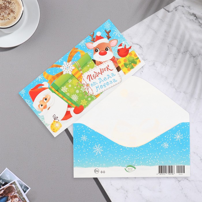 Конверт для денег «Подарок от Деда Мороза», голография, 16.5 х 8 см