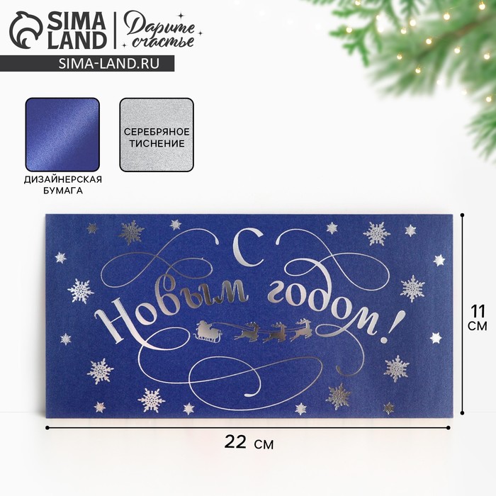 Конверт для денег «С новым годом», синий, 16.5×8 см