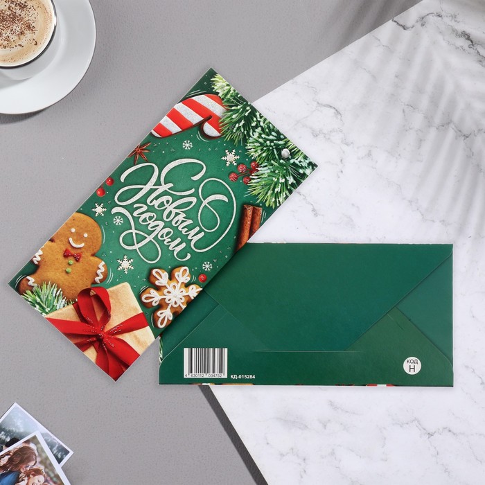 Конверт для денег «С новым годом», зелёный, 16.5×8 см