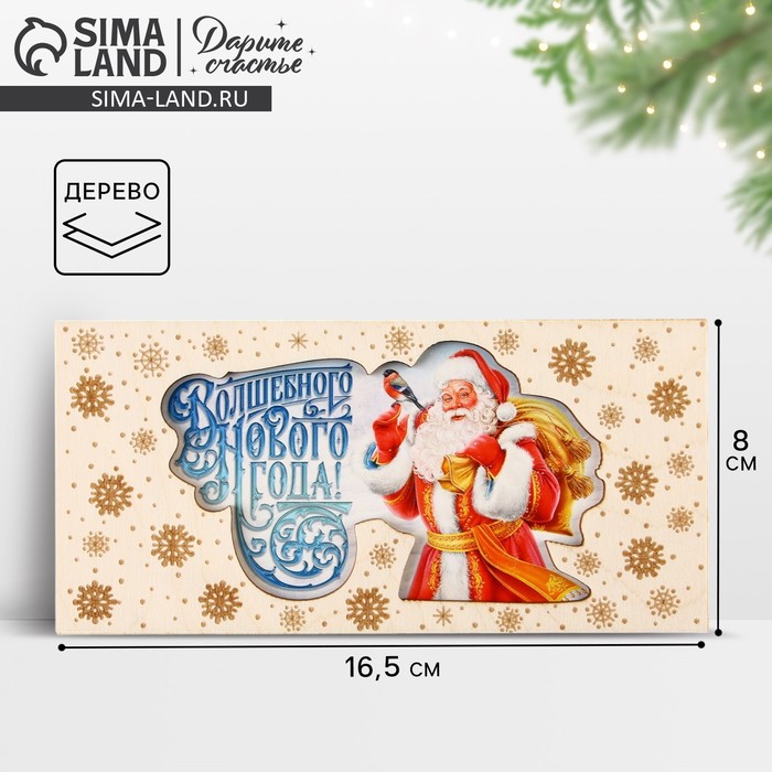 Конверт для денег деревянный резной «Волшебного Нового года!», Дед Мороз, 16.5 х 8 см