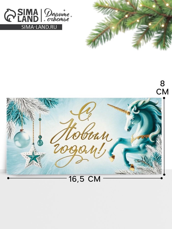 Конверт для денег «Новый год 2026», единорог, 16.5×8 см