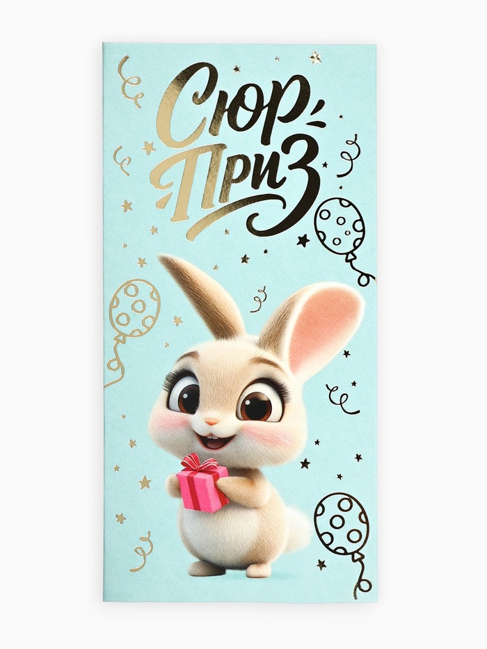 Конверт для денег «Сюрприз», зайчик, тиснение, 16.5×8 см