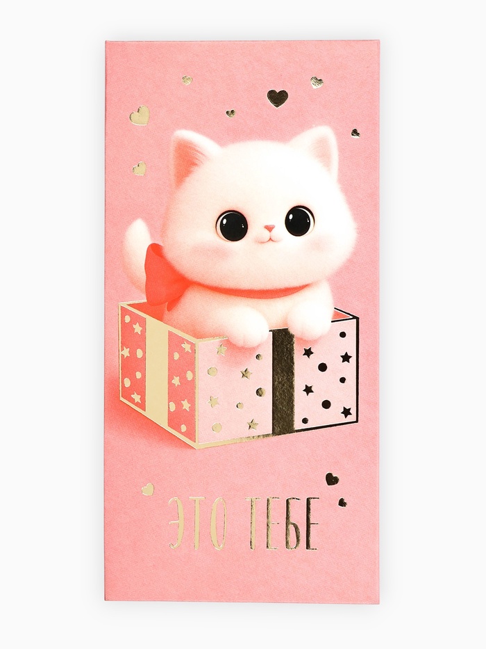 Конверт для денег «Это тебе», котик, тиснение, 16.5×8 см