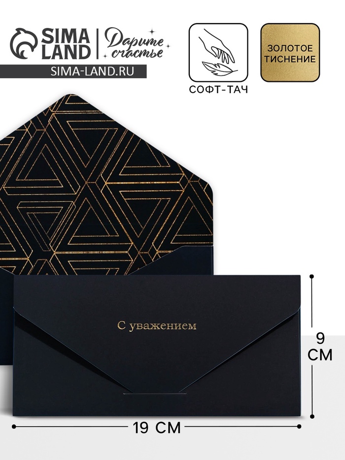Конверт подарочный «С уважением», софт тач, тиснение, 19×9 см