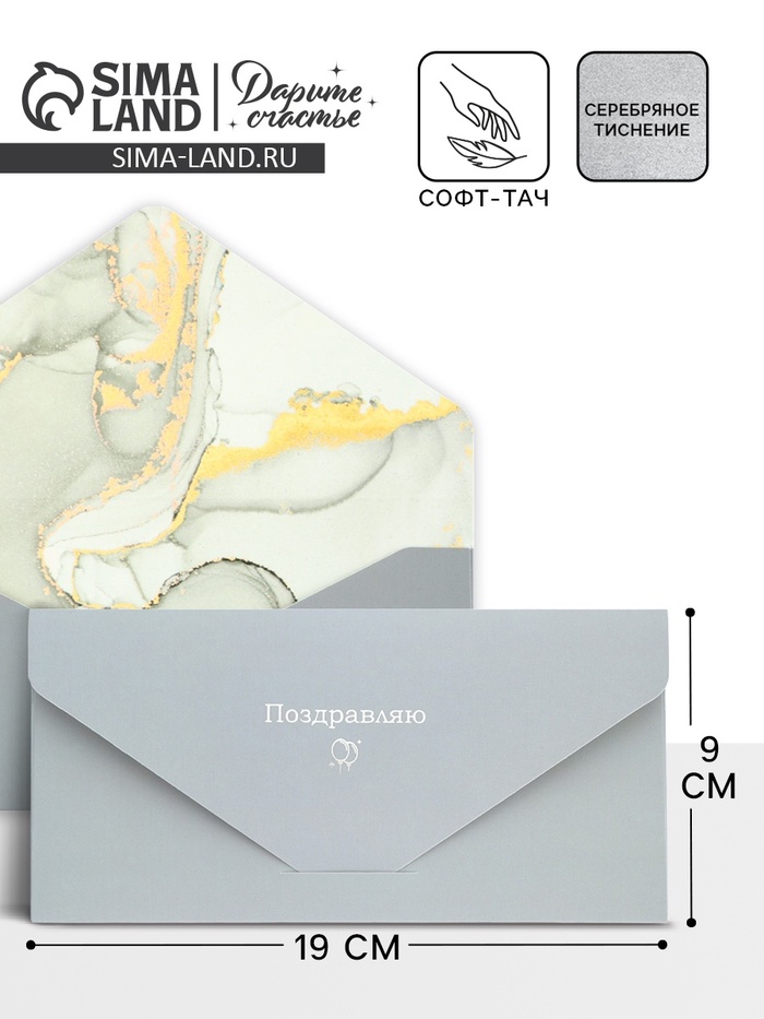 Конверт подарочный «Поздравляю», софт тач, тиснение, 19×9 см