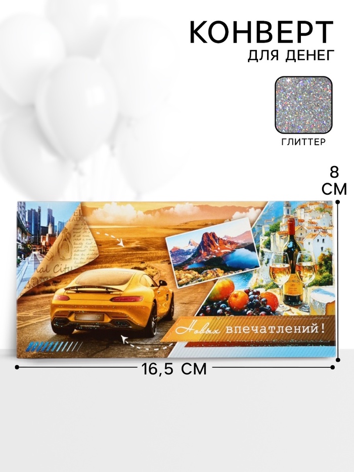 Конверт для денег «Новых впечатлений!»61, 16,5 × 8 см