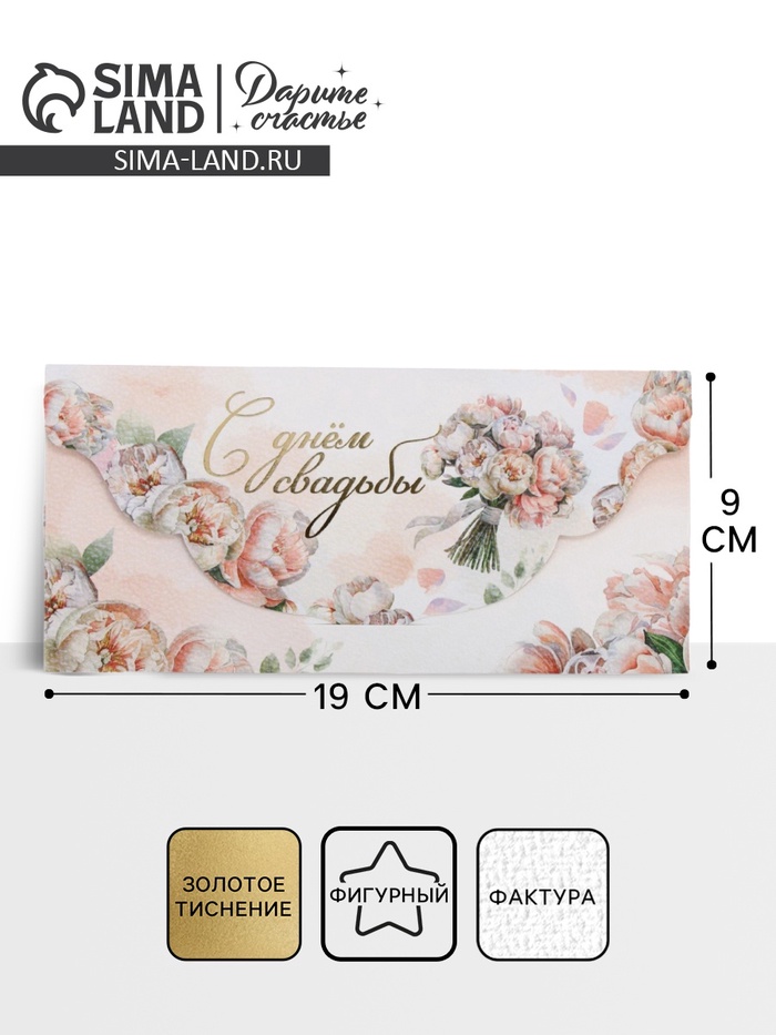 Конверт для денег «В прекрасный день вашей свадьбы!» тиснение, 17×8 см