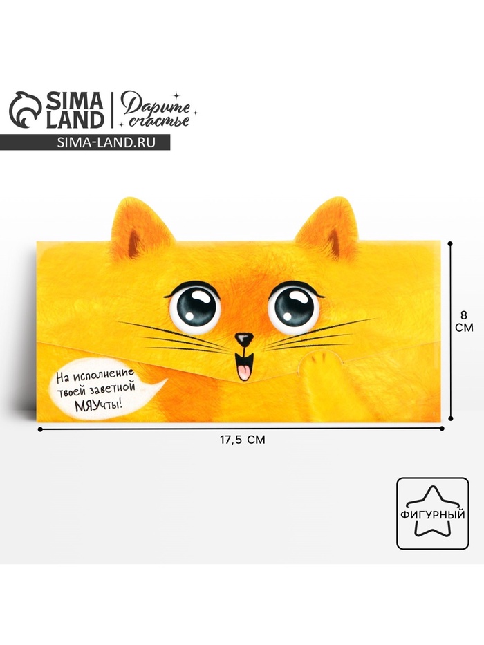 Конверт для денег фигурный «Котик», 17.5 х 8 см