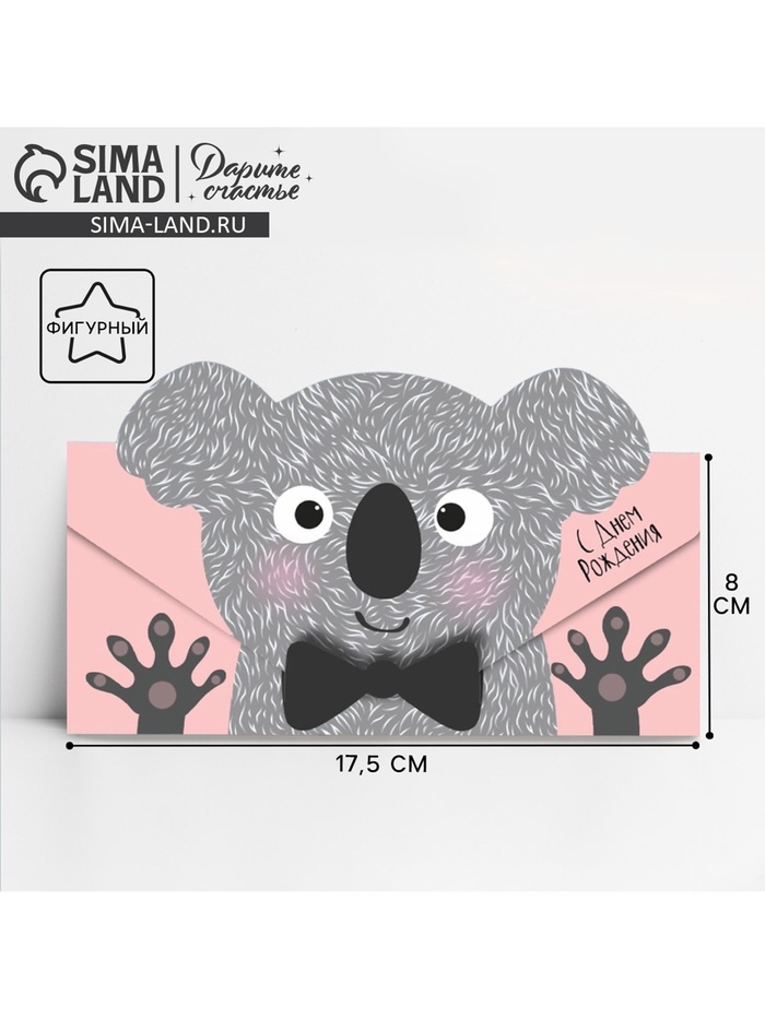 Конверт для денег фигурный «С Днём Рождения», коала, 17.5 х 8 см