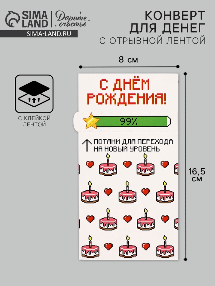 Конверт для денег с отрывной лентой «С днём рождения», 16.5 х 8 см