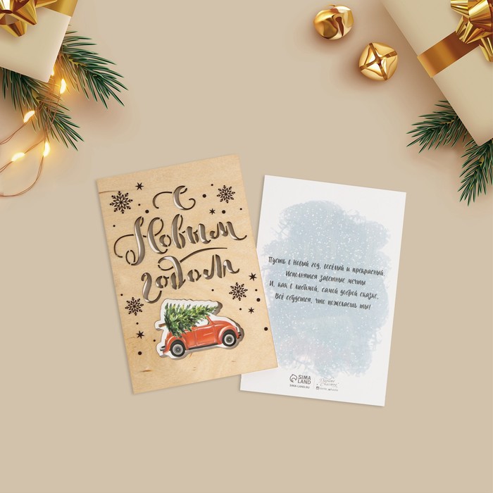 Открытка деревянная «С Новым Годом!», 10×15 см