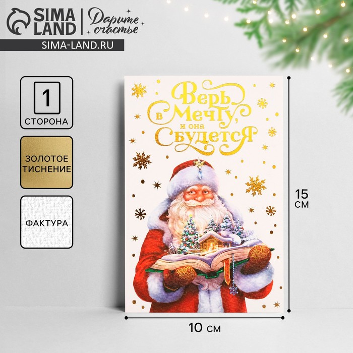 Открытка с новым годом на акварельном картоне «Верь в мечту, и она сбудется», тиснение, 10 х 15 см