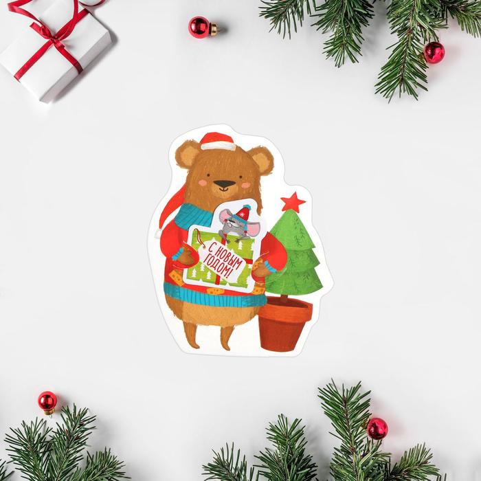 Открытка поздравительная «Новогодняя» мишка с ёлкой, 7 х 9 см