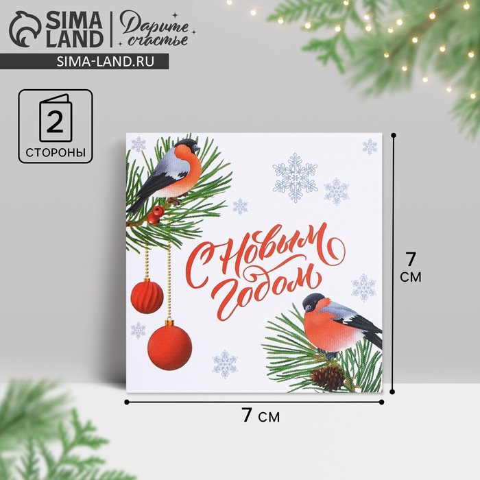 Открытка-мини с новым годом «Снегири», 7 х 7 см