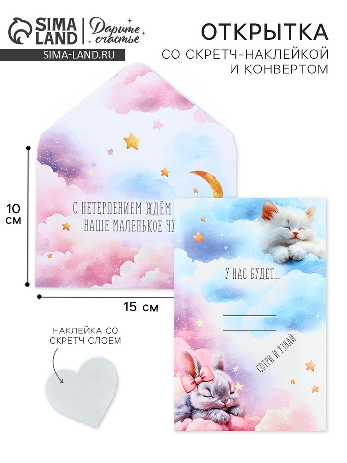 Конверт со скретч-наклейкой и открыткой «Маленькое чудо», 10 х 15 см