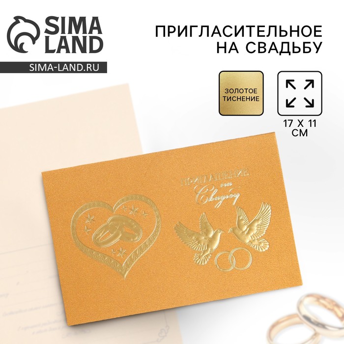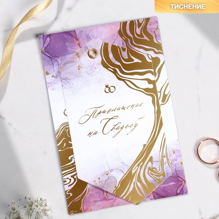 Приглашение на свадьбу ПВС с тиснением «Золотой дождь», 17×10 см