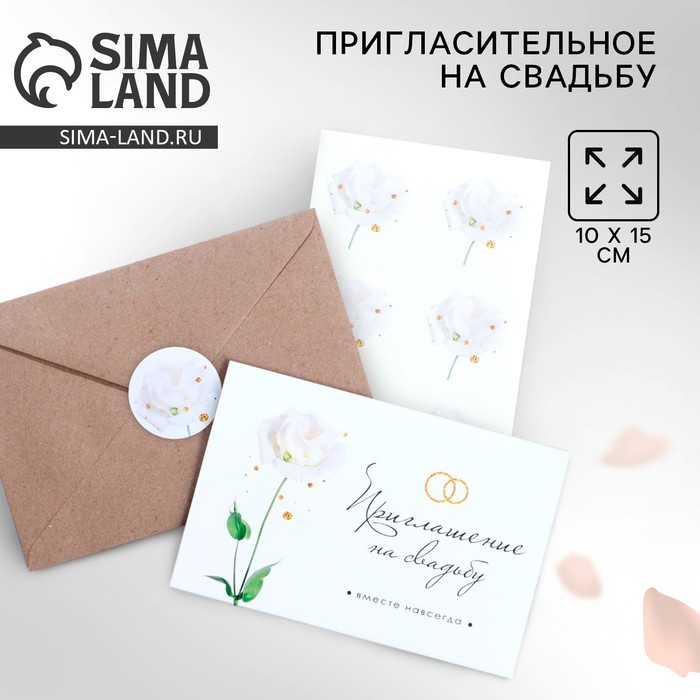 Приглашение на свадьбу в крафтовом конверте «Белые розы», 10 х 15 см.