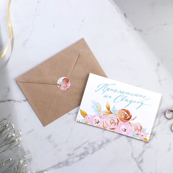 Приглашение в крафтовом конверте на свадьбу «Розовая нежность», 10 х 15 см