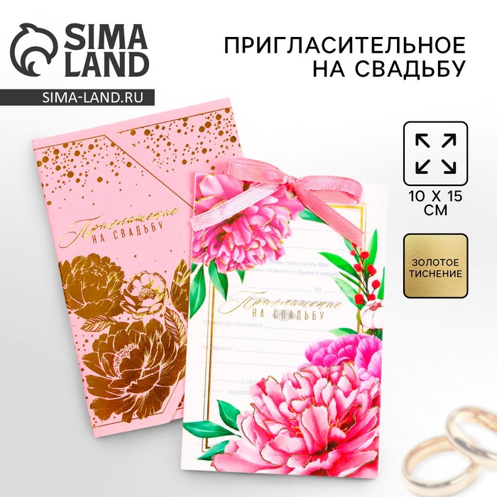Приглашение на свадьбу: с конвертом «Нежность», 10 х 15 см.
