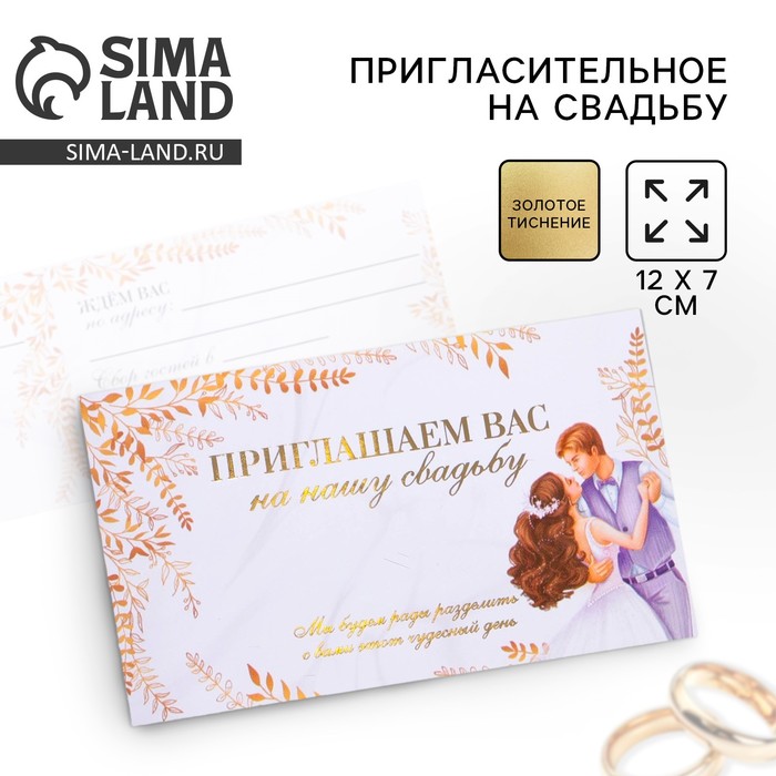 Приглашение на свадьбу «Молодожены», 12 х 7 см.