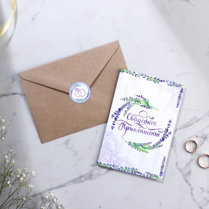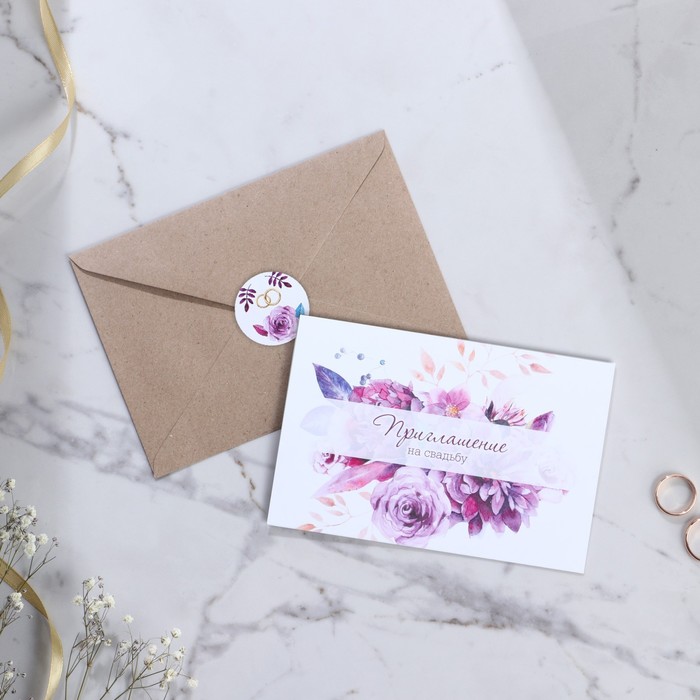 Приглашение на свадьбу в крафтовом конверте «Лаванда», 10×15 см