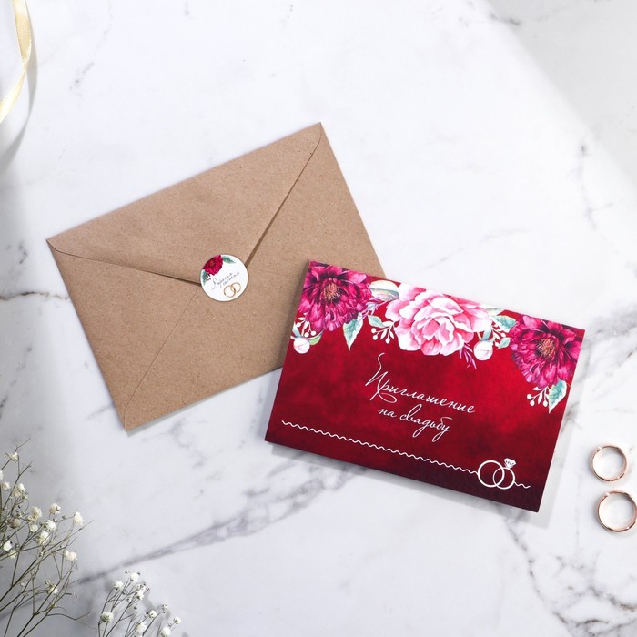 Приглашение на свадьбу в крафтовом конверте «Марсала», 20×15