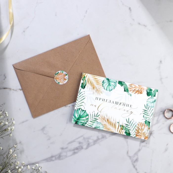 Приглашение на свадьбу в крафтовом конверте «Тропики»