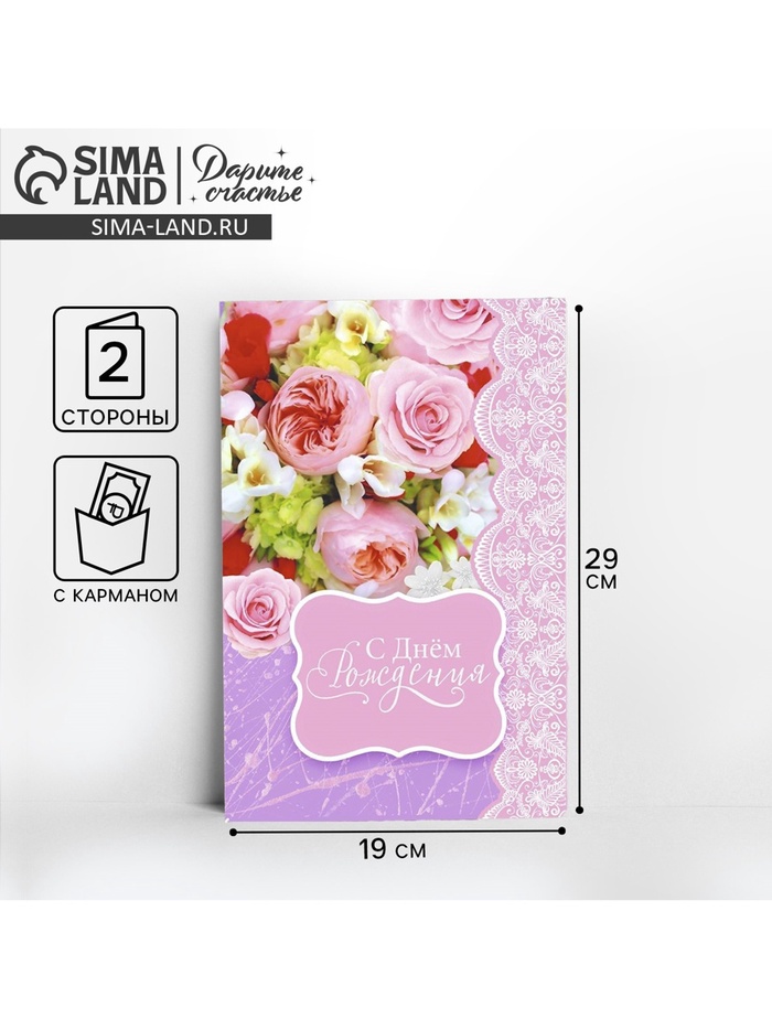 Открытка с карманом для денег «Нежное кружево», 19 х 29 см