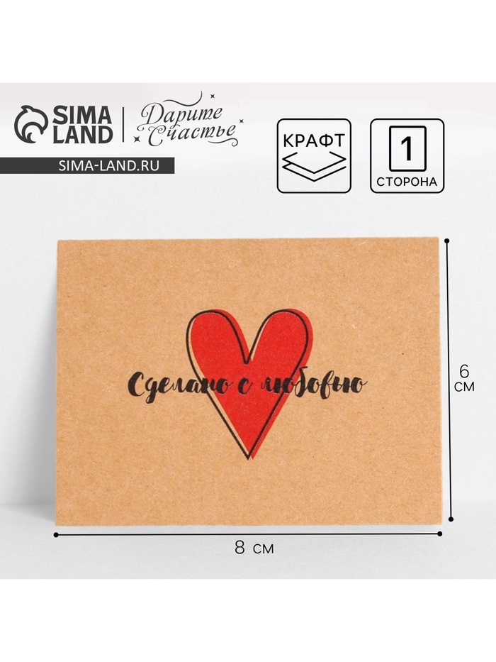 Открытка-мини для бизнеса «Сделано с любовью», крафт, 8×6 см