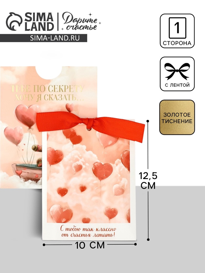 Открытка с конвертом на ленте «Поздравляю», тиснение, 10×12.5 см