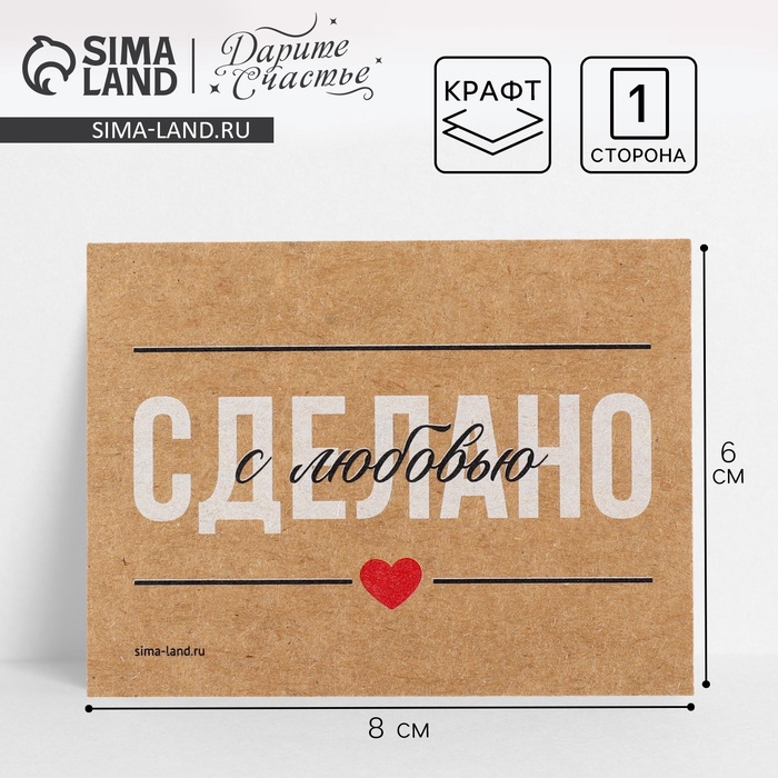 Открытка-мини для бизнеса «Сделано с любовью», крафт, 8 х 6 см