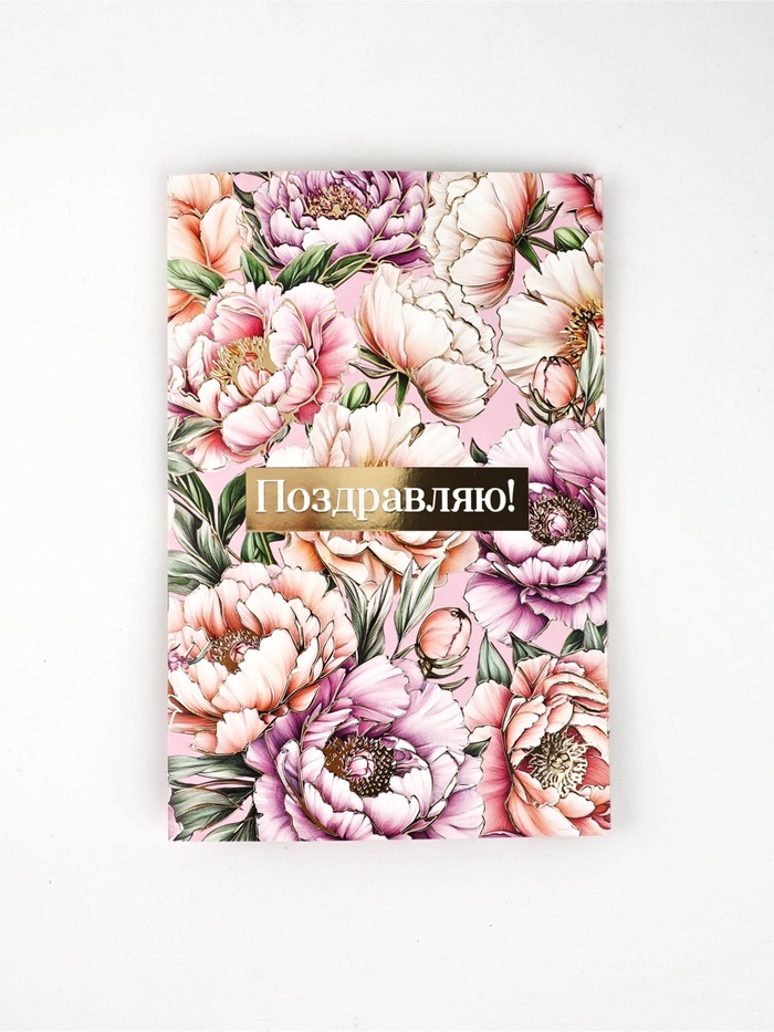 Открытка «Поздравляю», букет пионов, 12 × 18 см