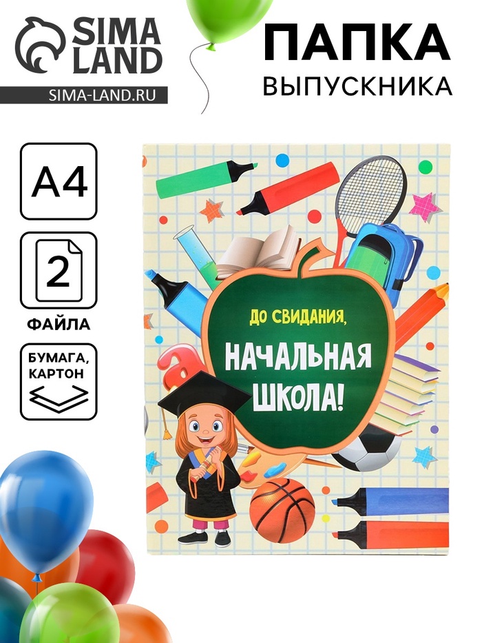 Папка с двумя файлами А4 на выпускной «До свидания, начальная школа»