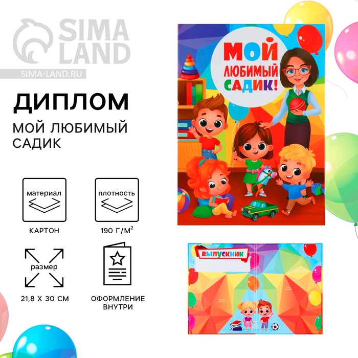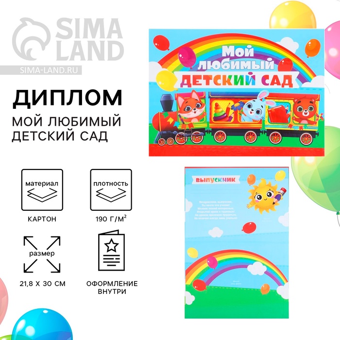 Диплом выпускника детского сада, 21.8×30 см «Мой любимый садик»