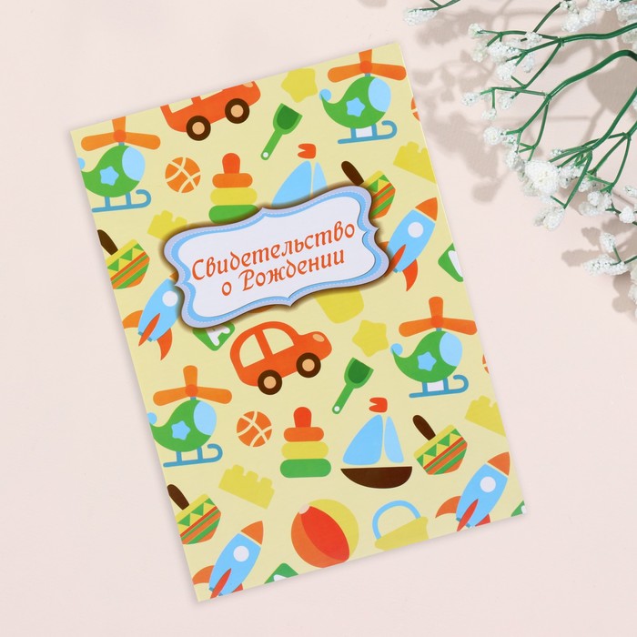 Свидетельство о рождении «Игрушки» ламинированное, А4