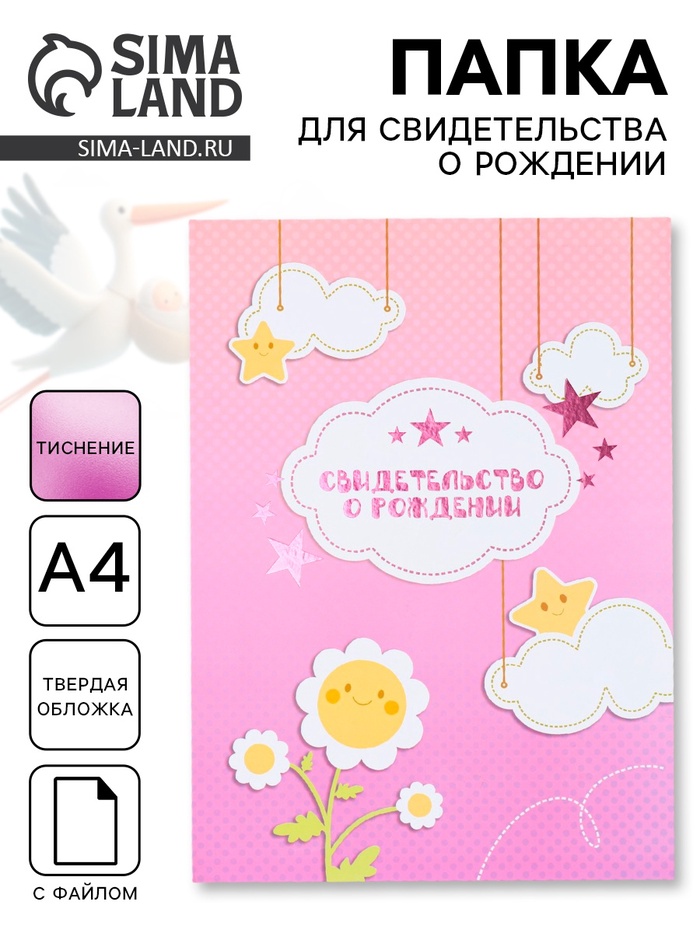 Папка для свидетельства о рождении, тиснение, А4 «Цветочек»