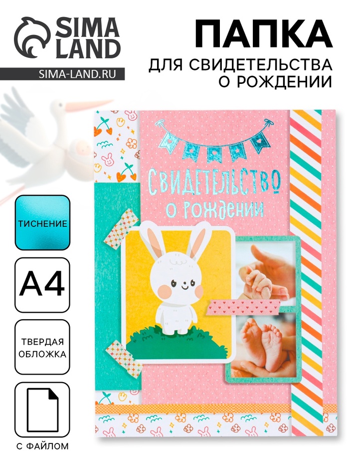 Папка под свидетельство о рождении, А5 «Зайчик»