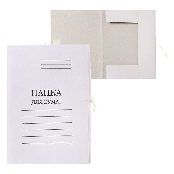Папка для бумаг с завязками Calligrata, картон немелованный, 370 г/м², белая, до 200 л