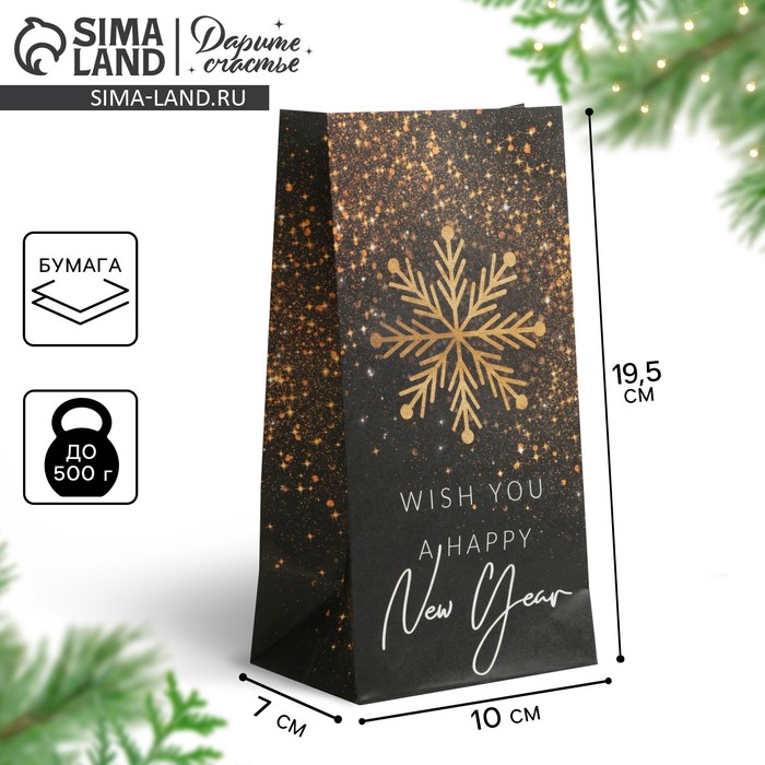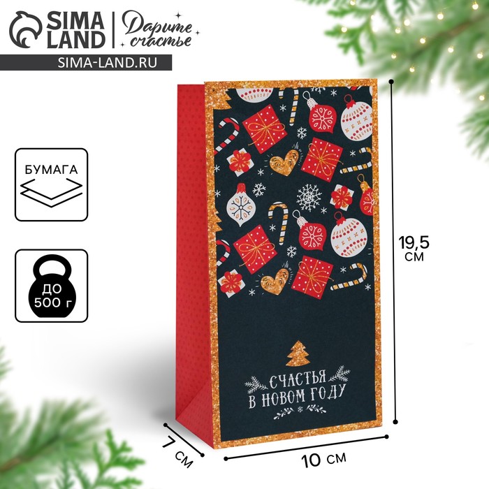 Пакет без ручек «Счастья в Новом Году», 10 х 19.3 х 7 см