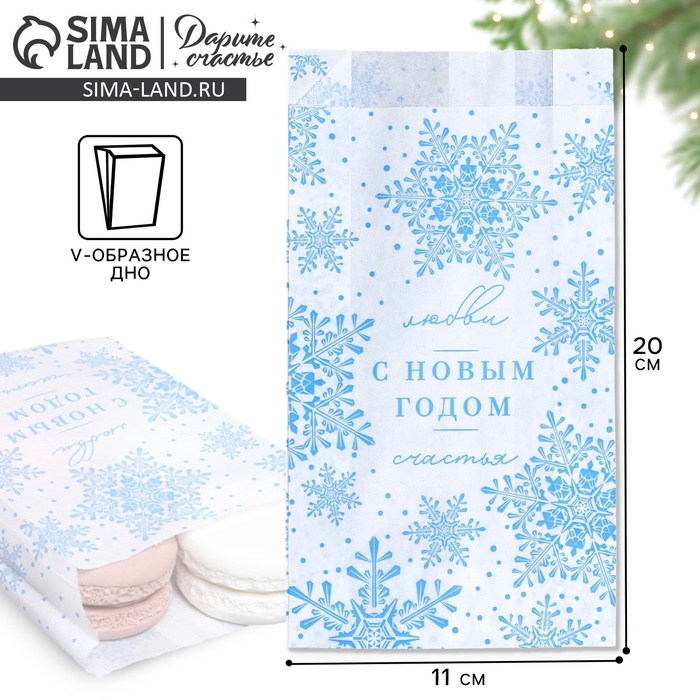 Пакет бумажный фасовочный, крафт, V-образное дно «С Новым годом», 20×11×4 см