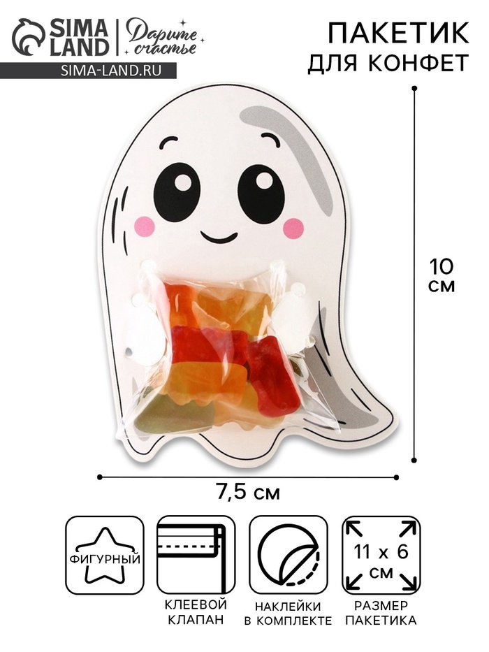 Пакет под конфеты, кондитерская упаковка, «Привидение», 11 х 6 см