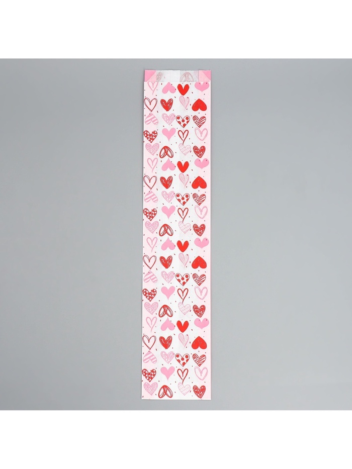 Пакет бумажный фасовочный, крафт, «Сердечки» 11×52×4.5 см без окна